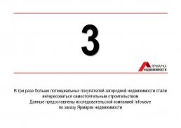 Согласно данным исследовательской компании Infowave по заказу Ярмарки недвижимости (Санкт-Петербург, 2014-2015 гг.) в три раза больше потенциальных покупателей загородной недвижимости стали интересоваться самостоятельным строительством. По данным опроса посетителей загородной экспозиции Ярмарки недвижимости в конце 2015 года, 72% респондентов планируют строить загородный дом, а не выбирать из готовых предложений.